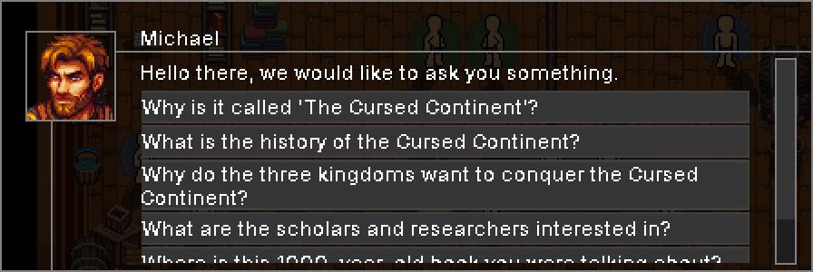 The dialogue system in Adventures of Conquest is quite powerful! It emphasizes interactions between characters with different personality types.