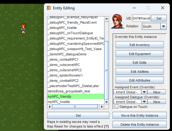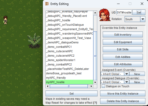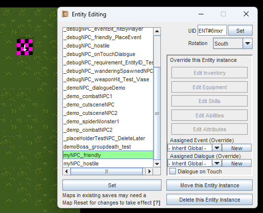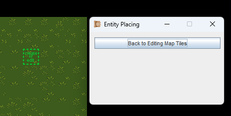 As with Items, your cursor will change, and you can left-click on the Map to place down an Entity.