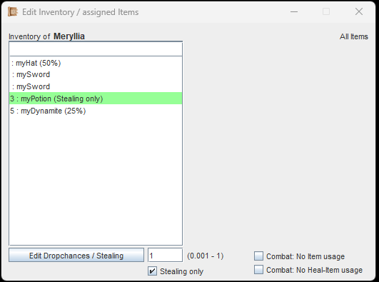 After you have placed Items in the NPCs inventory, you can click on the 'Edit Dropchances/Stealing"-Button.
