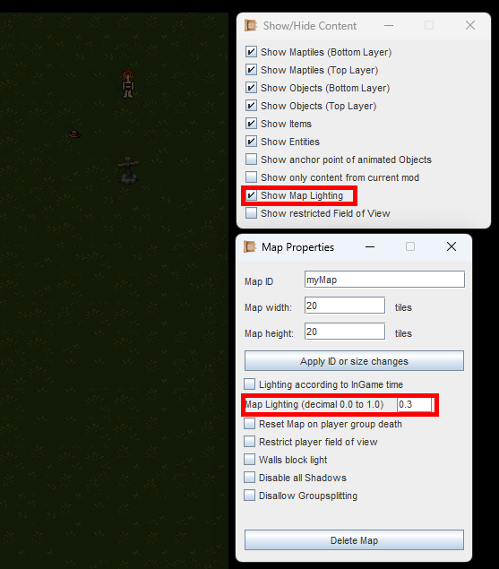 However, if you add a light source to a bright map, you won't see much of a difference. Try to reduce the Map's base lighting, or set Lighting according to the in-game time and then press the 'Home' and 'End' keys in the Editor to change the time.